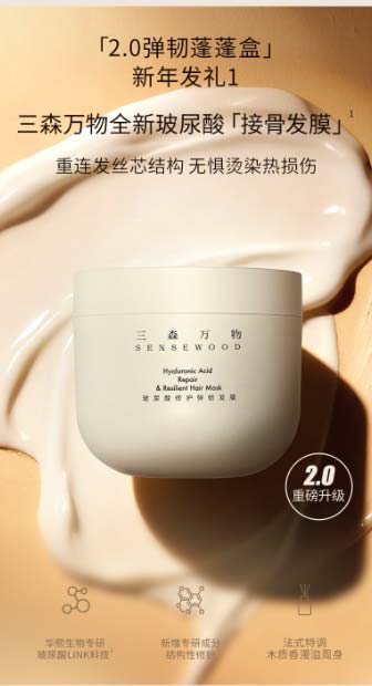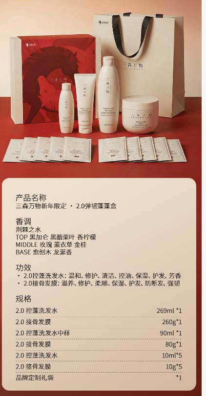 三森万物「2.0 弹韧蓬蓬盒」马年限定,以赤焰红浮雕马纹为核心视觉,将 “马年开运” 的祥瑞寓意与品牌来源“道生一,一生二,二生三,三生万物” 的东方美学镌刻于盒身。赤焰红象征新年鸿运,浮雕马纹呼应 “马上蓬发” 的新春吉愿,每一道纹路都藏着让发丝 “三生万物” 的蓬发生长力。