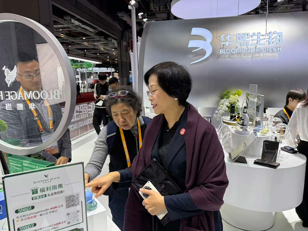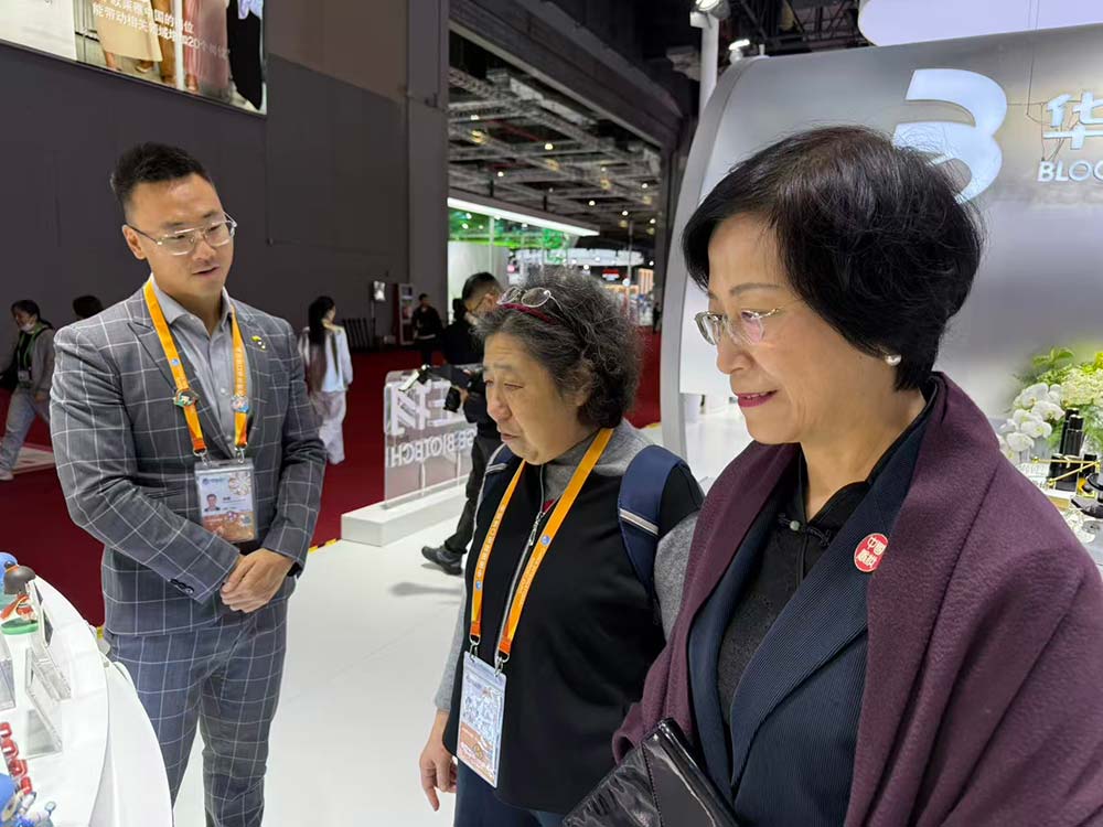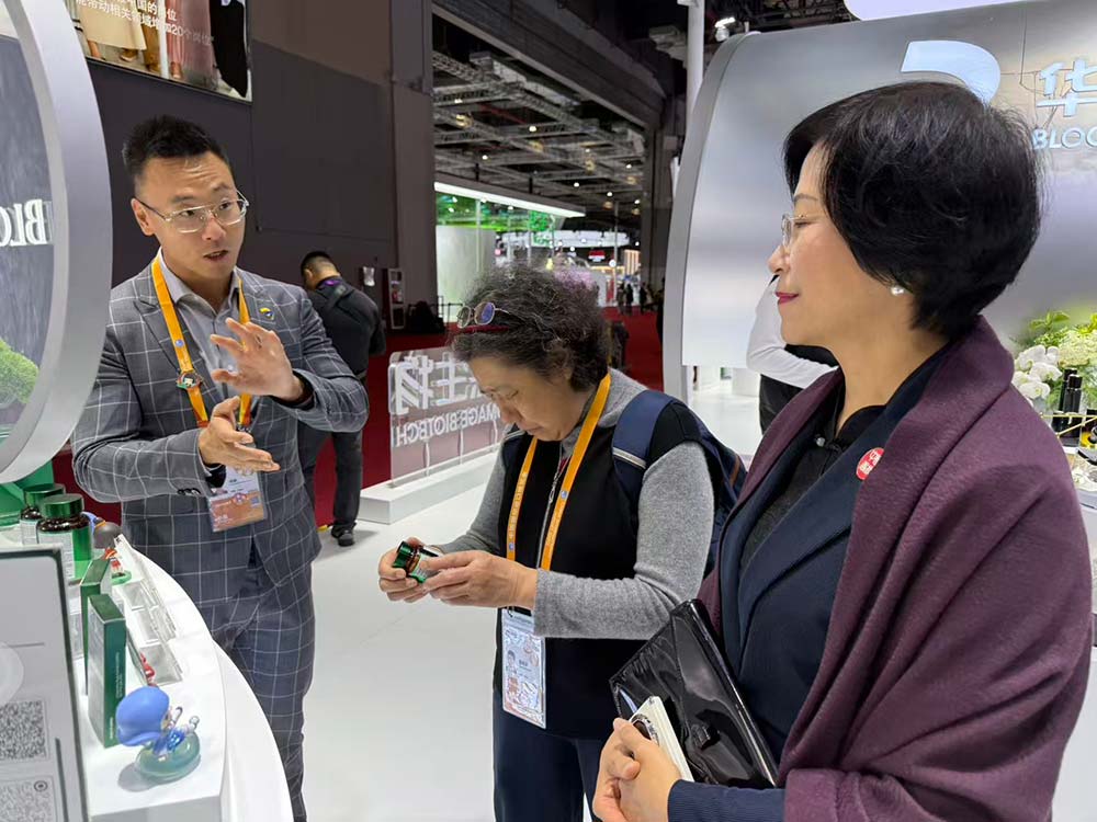 颜江瑛理事长和董树芬顾问参访进博会华熙生物展台
