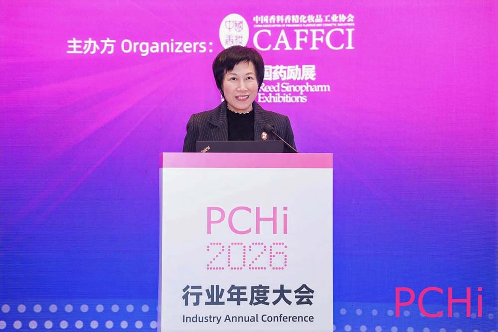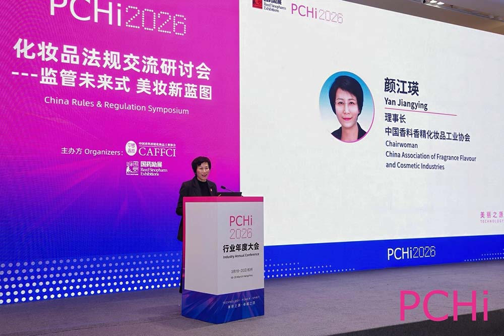 3月19日,以“监管式未来美妆新蓝图”为主题的化妆品法规交流研讨会在PCHi2026行业年度大会上召开,中国香料香精化妆品工业协会(以下简称中国香妆协会)理事长、医学博士颜江瑛出席研讨会并致辞。