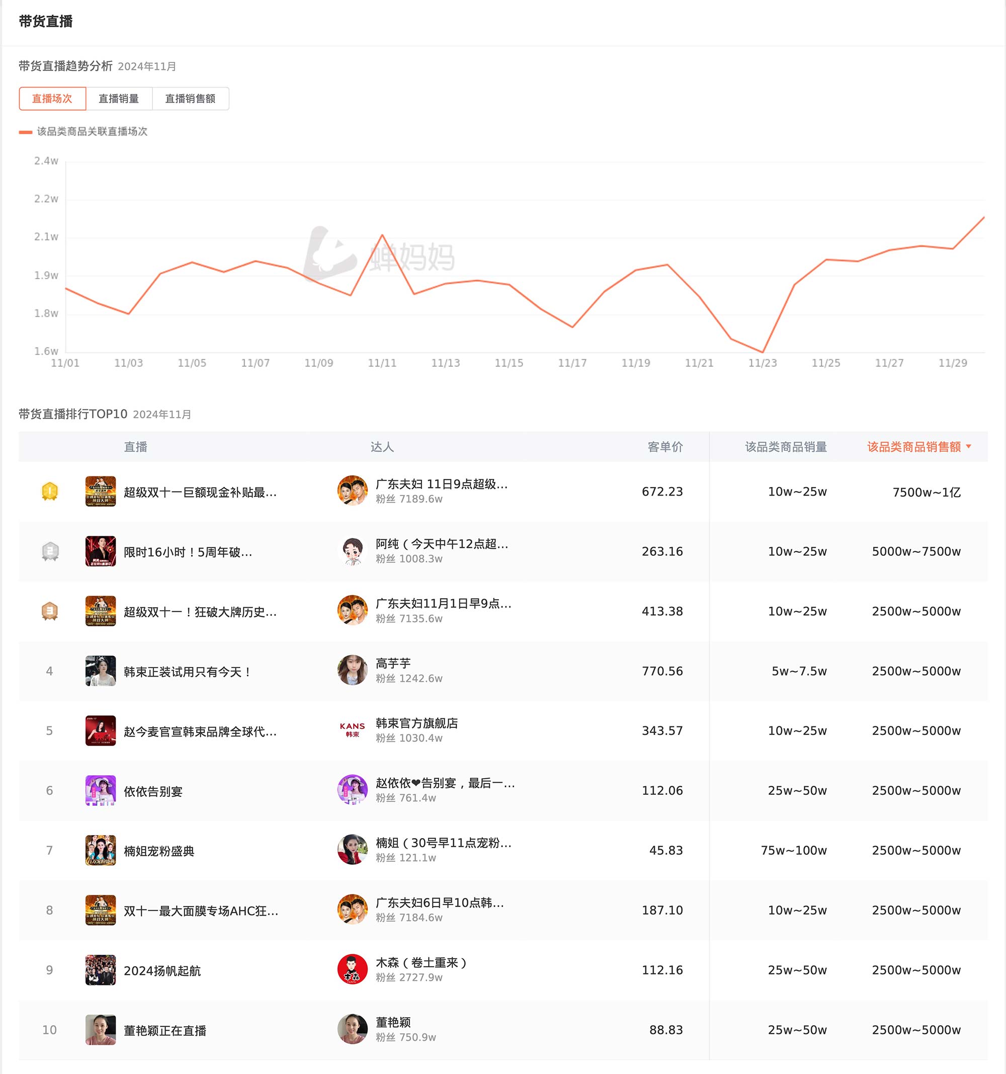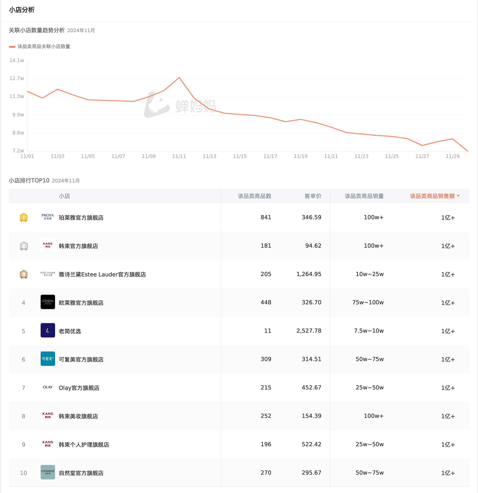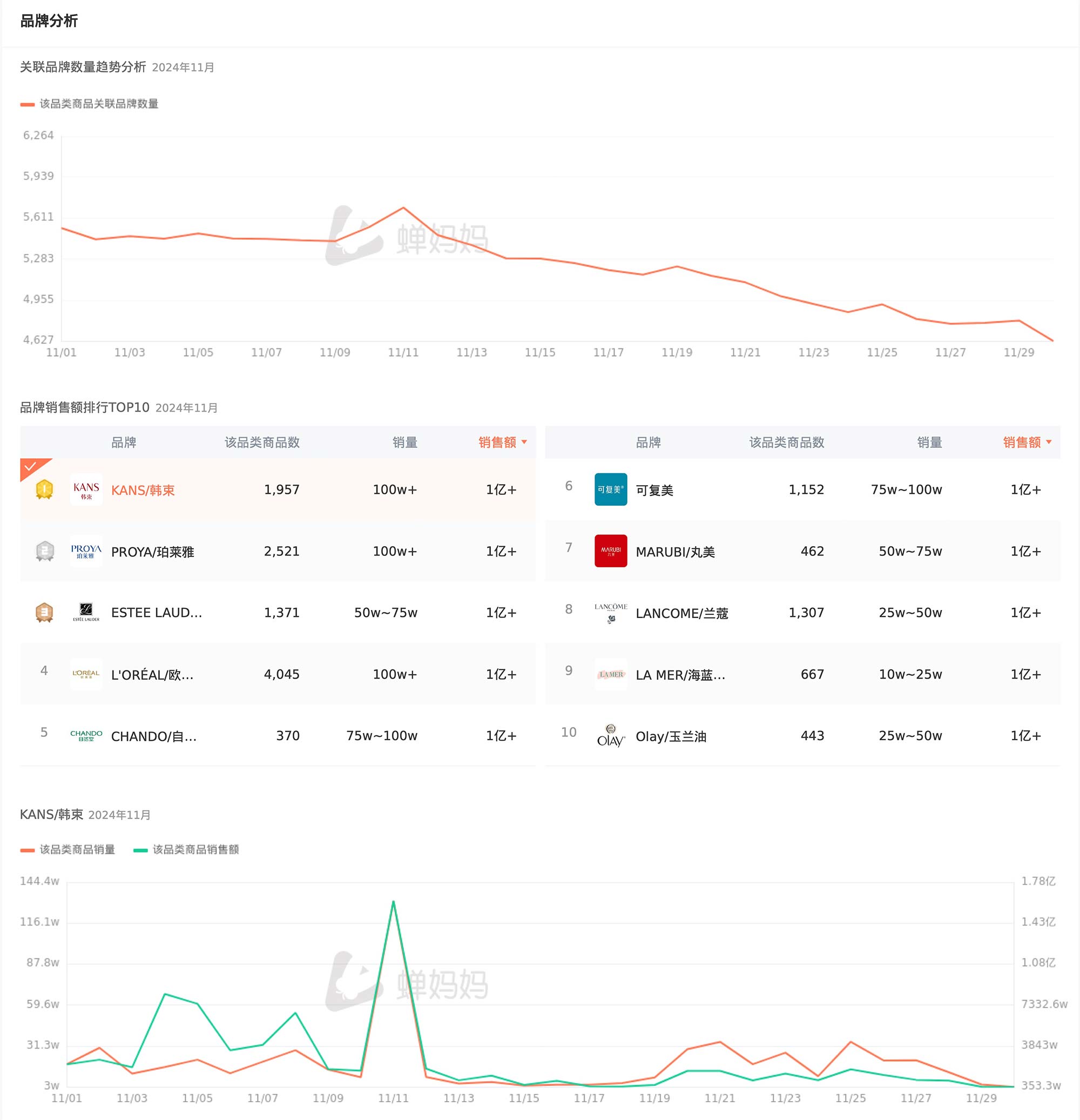 近日,蝉妈妈11月份美妆护肤品类趋势分析报告发布,从销售数据到品牌竞争,再到消费者行为,这份报告提供了一个全方位的视角,让我们得以洞察美妆护肤市场的深层脉动。