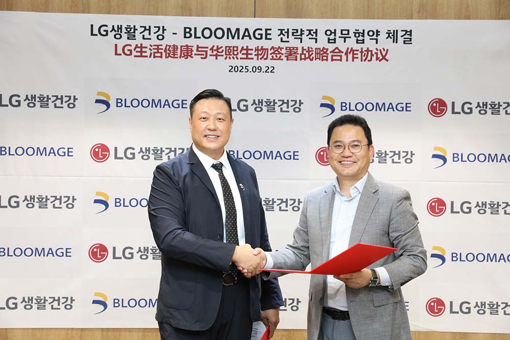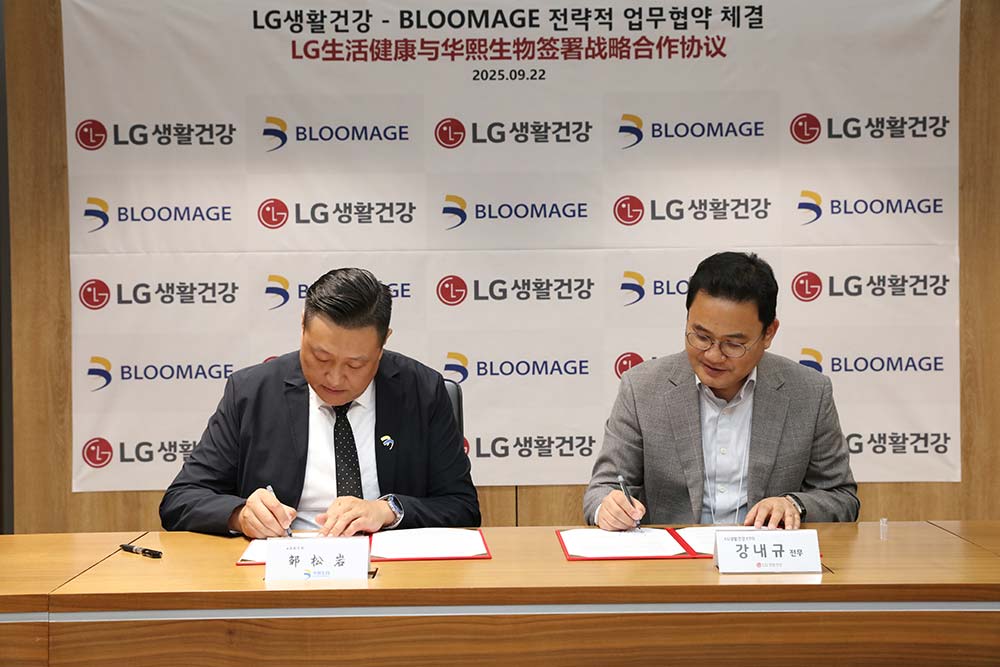 2025年9月22日,华熙生物与LG生活健康在首尔麻谷签署了战略合作协议(MOU)。此次合作聚焦于合成生物学技术的研究应用,旨在共同攻克肌肤老化问题,开发创新解决方案。华熙生物业务副总裁邹松岩与LG生活健康首席技术官姜來圭(강내규)出席了签约仪式。