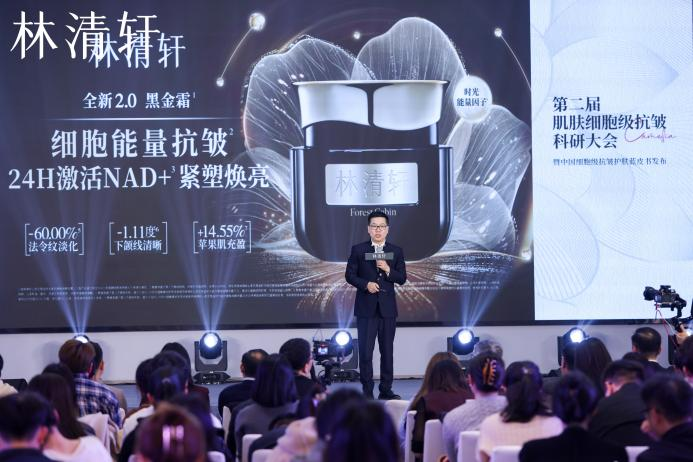 会上,林清轩发布了其最新研发的两款抗皱产品——山茶花抗皱修护精华油5.0和山茶花黑金时光肽抗皱焕亮精华霜2.0,该两款产品汇聚了细胞级抗皱领域的最新科研突破,是品牌布局“细胞级抗皱”技术矩阵的关键之作。