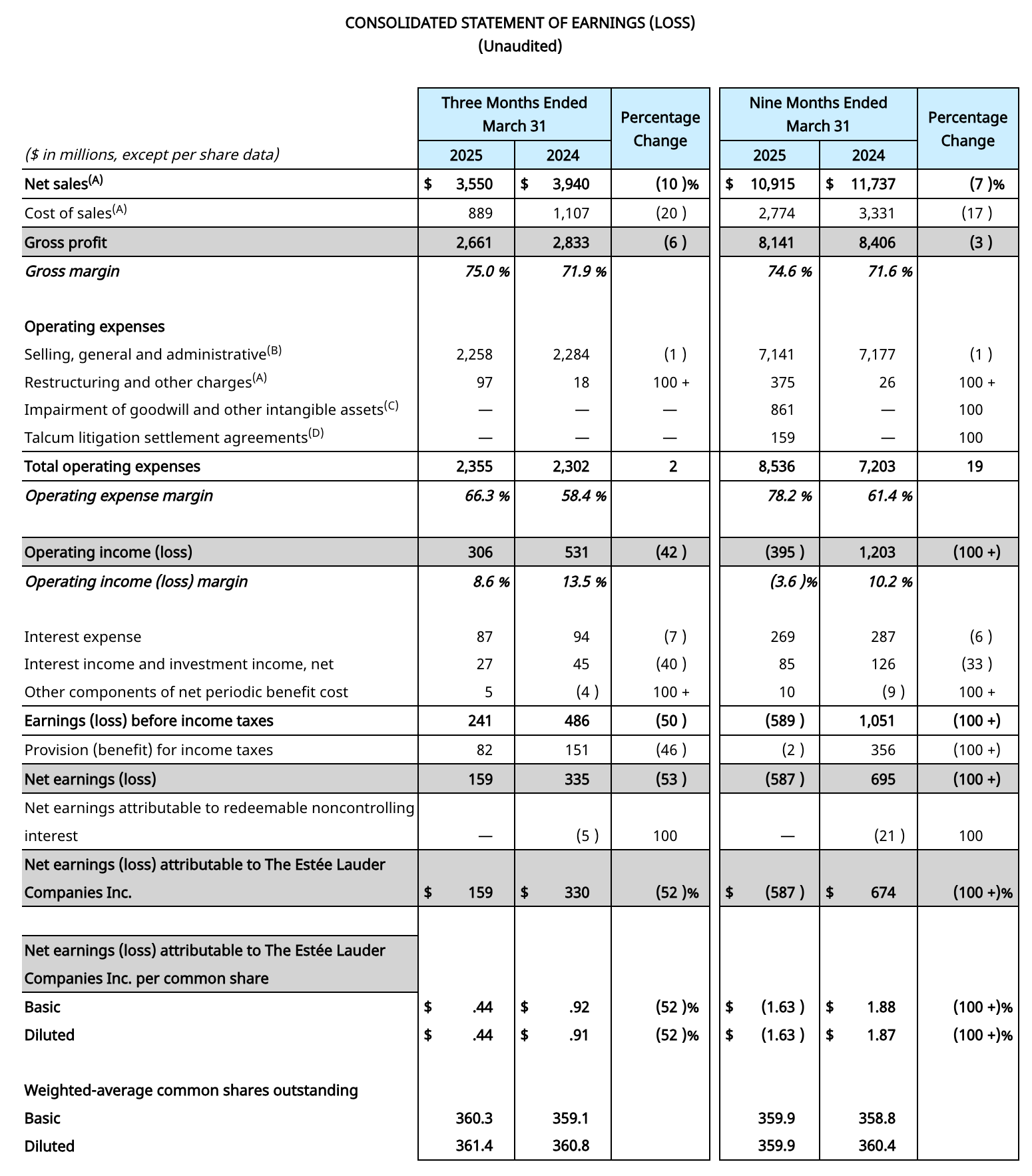 2025年5月1日,雅诗兰黛集团发布的第三财季财报再次印证了市场的担忧:这家拥有近八十年历史的美妆巨头仍未走出业绩泥潭。数据显示,截至3月31日的季度内,集团销售额同比下滑10%至35.5亿美元,净利润更是腰斩式下跌53%至1.59亿美元。这是新任全球总裁兼CEO司泰峰(Stéphane de La Faverie)上任四个月后交出的首份成绩单,尽管他主导的“利润恢复与增长计划”(PRGP)已初见成本控制成效,但核心业务的结构性矛盾与外部市场的持续震荡,让雅诗兰黛的复苏之路显得尤为漫长。