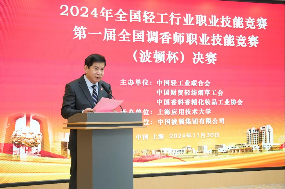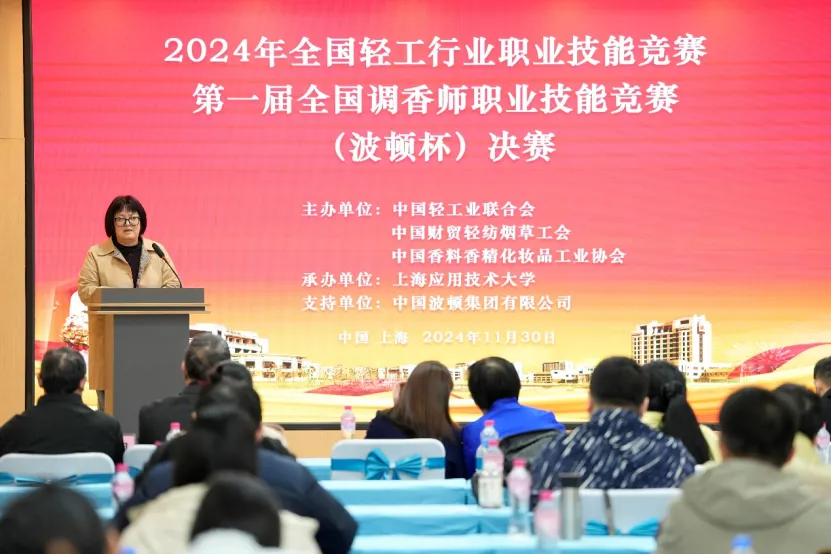 为全面贯彻落实党的二十届三中全会精神,大力弘扬精益求精的工匠精神,发展壮大我国香料香精行业人才队伍,选拔和发现技能人才,11月30日,2024年全国轻工行业职业技能竞赛——第一届全国调香师职业技能竞赛(波顿杯)决赛在上海举行。本次竞赛是由中国轻工业联合会、中国财贸轻纺烟草工会和中国香料香精化妆品工业协会(以下简称中国香妆协会)共同主办、上海应用技术大学承办,中国波顿集团有限公司作为支持单位。本次竞赛由中国香妆协会副理事长王来冬主持。