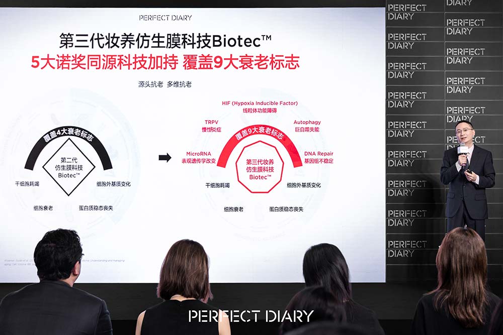 完美日记研发高级总监俞鹏勇强调:“第三代妆养仿生膜科技Biotec™基于前面两代科技的基础上,加入五大诺奖同源科技,实现诺奖同源妆养科技新突破。这一升级不仅是科技的进化,更重新定义了妆养合一的未来。”第三代妆养仿生膜科技Biotec™以国际合作科研资源为后盾,将全球前沿理论转化为卓越实效,驱动品牌妆养一体领域生态的发展与突破。