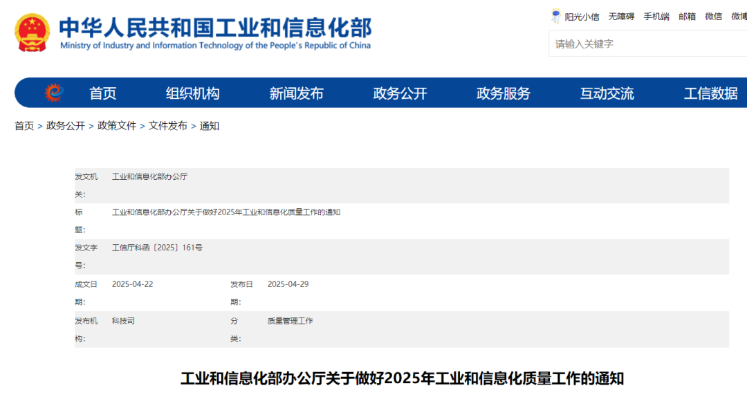 为完善质量发展长效机制,工信部拟建立质量发展监测体系。加强质量发展形势研判跟踪,开展质量数据动态监测和分析应用,构建制造业质量水平指数,探索建设工业质量大数据平台,加快质量数字地图建设,监测区域、行业、企业质量发展水平,为质量决策提供参考依据和智力支持。健全政府、行业、社会等多层面的采信机制,推动制造业企业质量管理能力评价结果广泛采信应用。