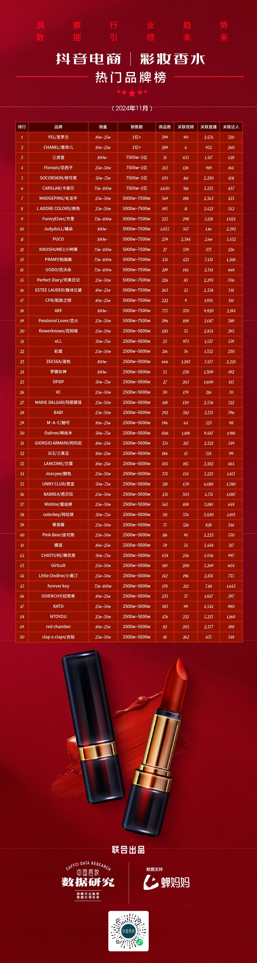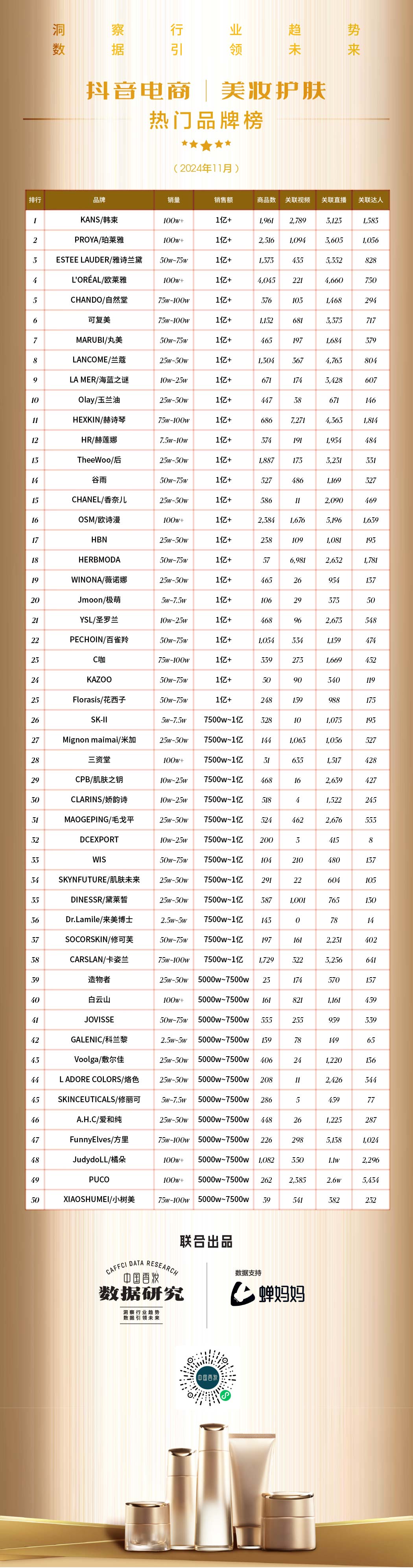 抖音电商2024年11月美妆护肤热门品牌榜