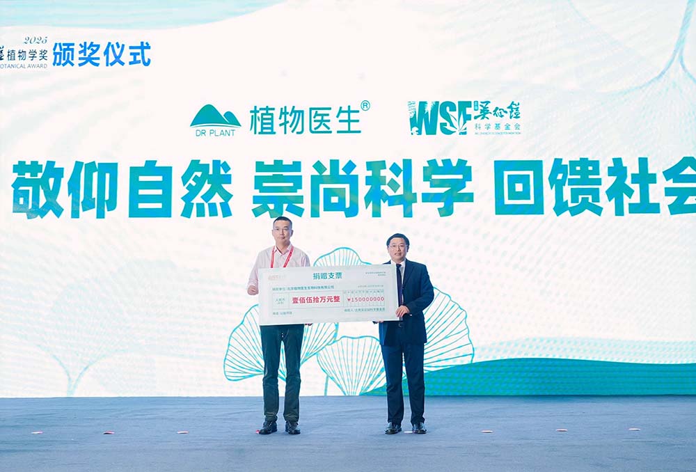 颁奖仪式上,植物医生董事长解勇向基金会捐赠2025年度奖励基金150万元。作为奖项的首席战略合作伙伴及首捐企业,解勇以《坚守科研初心,实践 ESG 使命,赴植物学新征程》为题发表演讲。