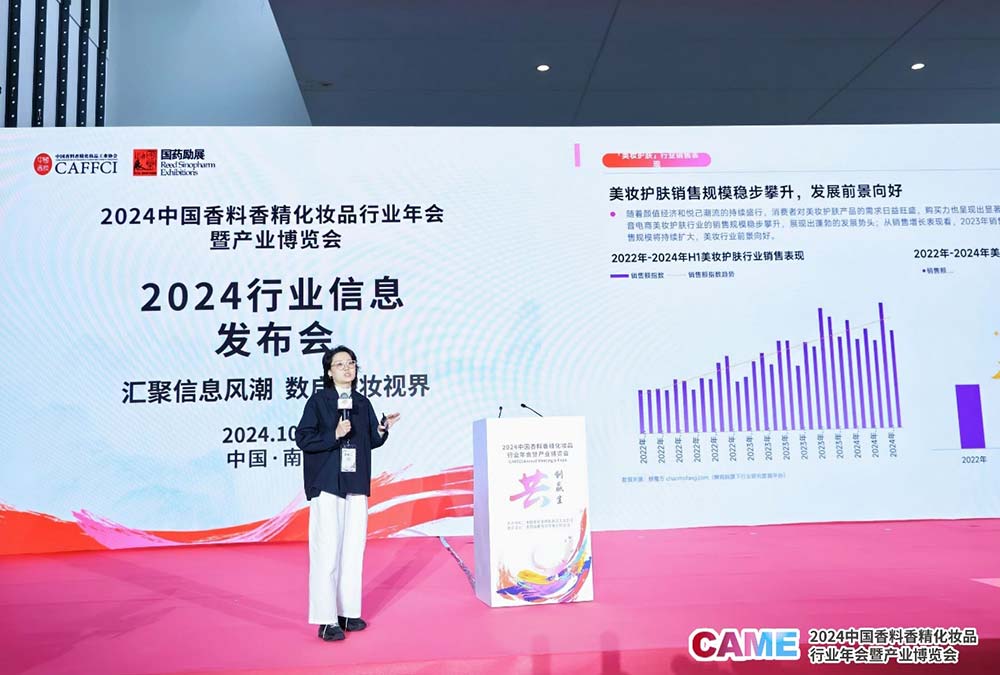 10月19日,在中国香料香精化妆品行业年会暨产业博览会(简称:CAME)的行业信息发布会上,蝉妈妈华东运营总监麻雀进行了题为《2024年Q1-Q3美妆赛道洞察暨战略分析》的分享。麻雀服务800+品牌方,包括泊本、烙色、诺特兰德、植护、蓝月亮、农夫山泉……陪伴见证品牌达播4个月实现月营收50倍生意确定性增长。