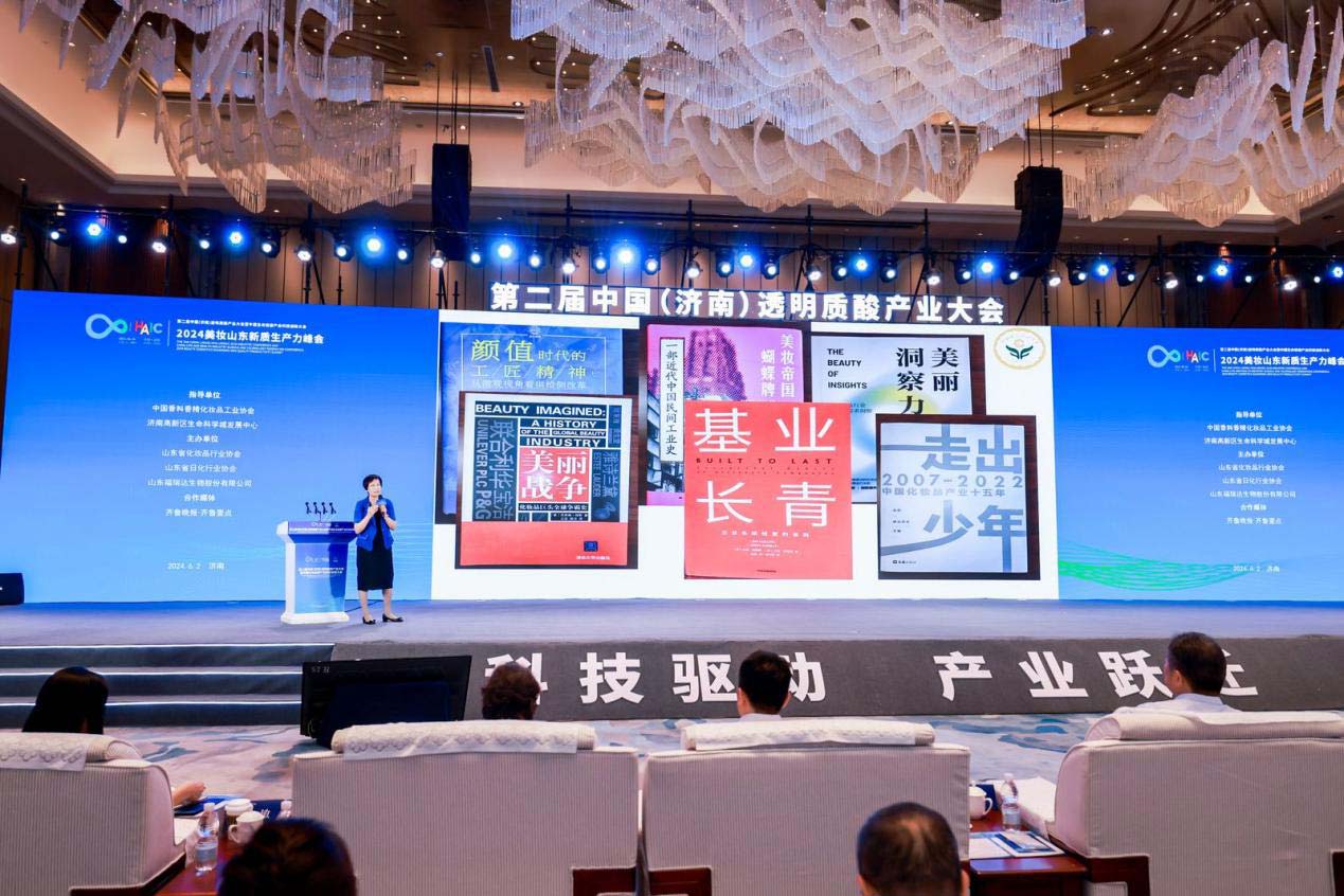 6月2日下午,由中国香料香精化妆品工业协会、济南高新区生命科学城发展中心指导,山东省化妆品行业协会、山东省日化行业协会、山东福瑞达生物股份有限公司联合主办的2024美妆山东新质生产力峰会在济南举行。会上,中国香化协会理事长、医学博士颜江瑛作了题为《传承 创新 超越 中国化妆品高质量发展机遇与挑战》的主旨演讲。