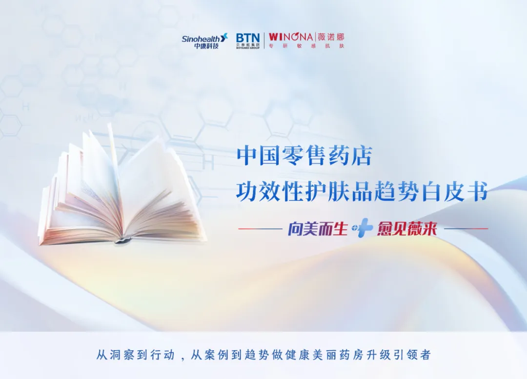 中康科技董事长吴瀚也表示,功效性护肤品高度符合上述要求,对零售药店构建大健康经营具有品类先导性。中康科技与品类领军企业贝泰妮集团联合发布《中国零售药店行业功效性护肤品趋势白皮书》,希望能为行业突破存量、拓展增量提供方向与方法的参考与指引。