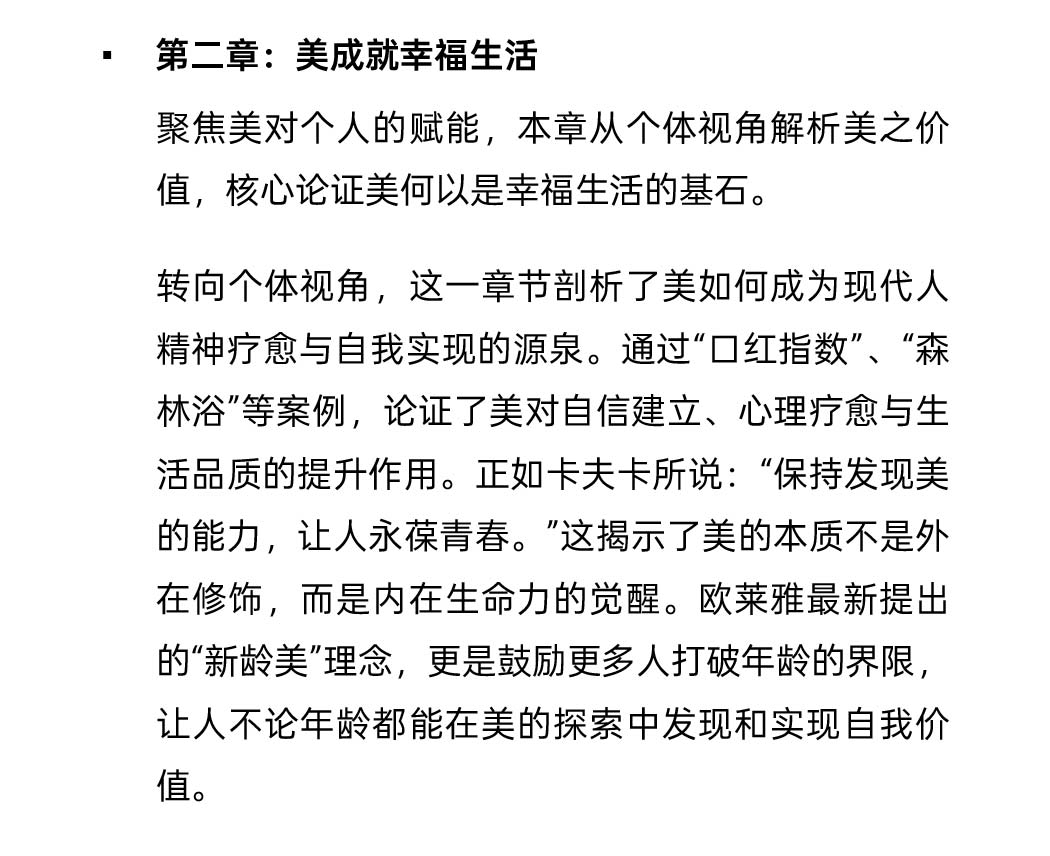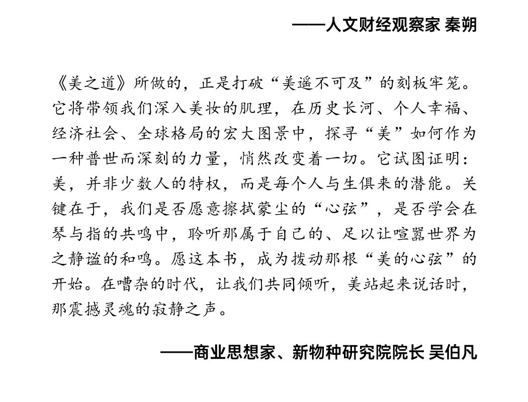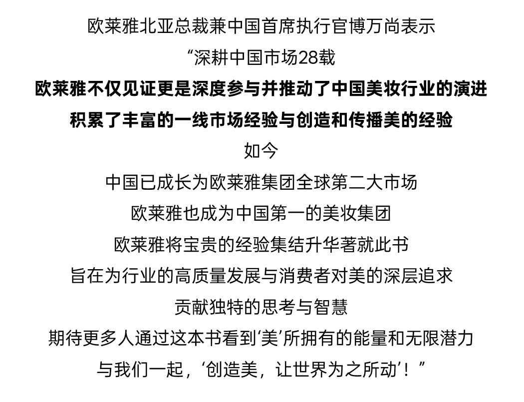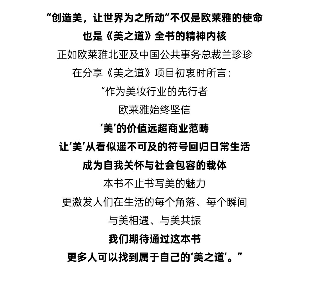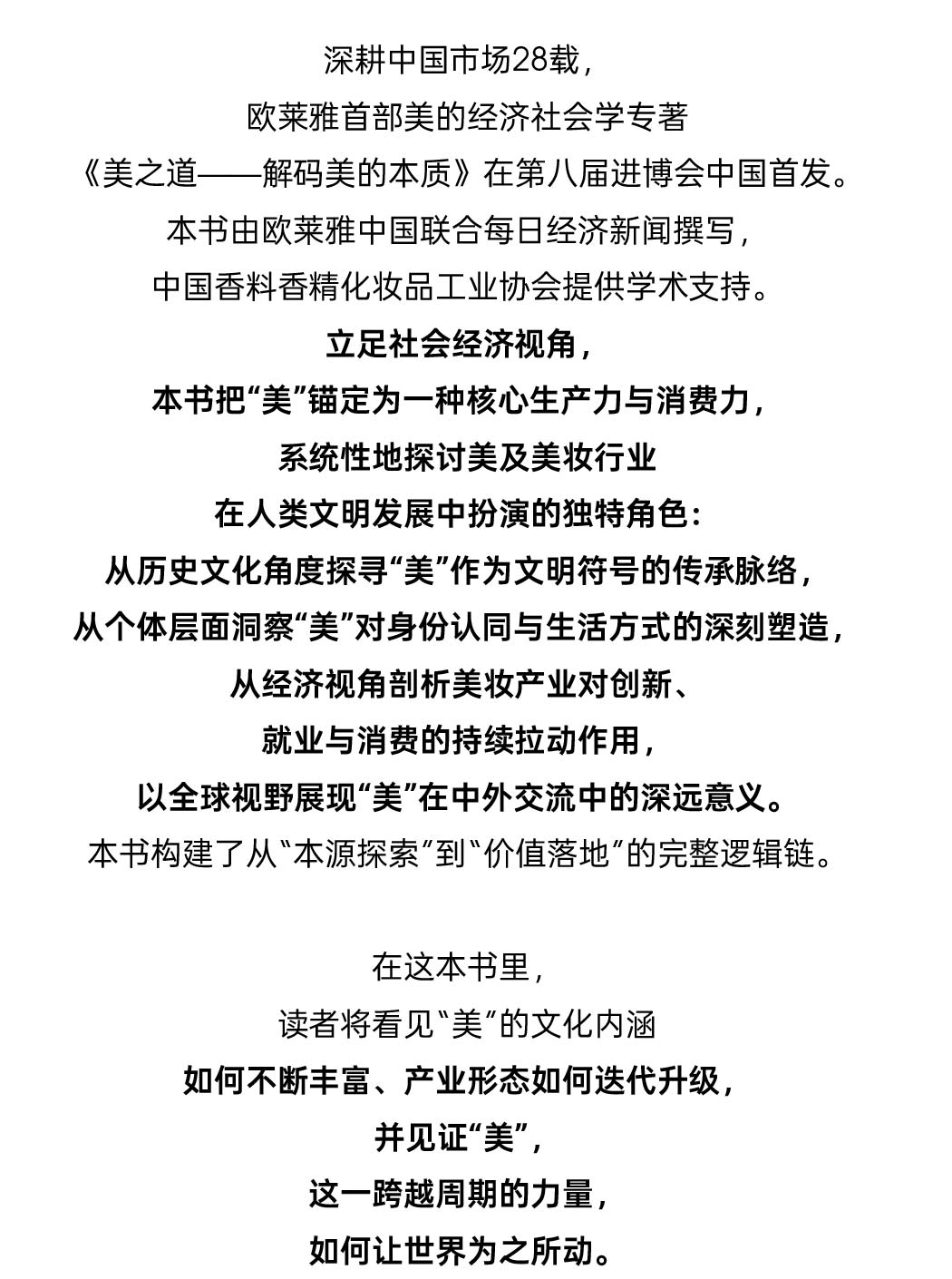 当全球美妆行业的巨头欧莱雅选择以一部名为《美之道:解码美的本质》(以下简称《美之道》)的经济社会学著作来系统阐述其对于“美”的深刻理解时,这本身就标志着一个行业领导者的风范。这部被业界视为首开行业先河的经济社会学著作,其意义远超越了一家企业自身的公关传播诉求,它更像是一份代表行业面向未来的“美之宣言”,试图将“美”从以往局限于艺术哲学与商业营销的范畴中解放出来,并将其锚定为核心的生产力与消费力,置于经济社会发展的新叙事中进行审视。通过对《美之道》的阅读,我们或可以解码欧莱雅作为行业领导者的“大美”思想,并